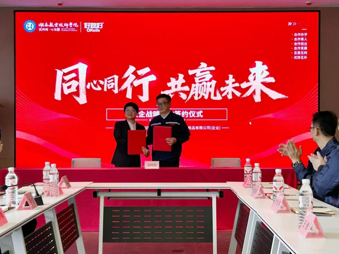 在双方代表见证下,李清副院长与尹建国董事长签署协议,标志着合作迈入系统化、常态化新阶段。签约后,首个合作项目“好媳妇家居校园内购会”依托校园贸易节同步启动,电商专业学生在教师指导下全程参与策划、宣传、销售等环节,既为师生提供优质优价产品,更实现“以践提能”的育人目标。