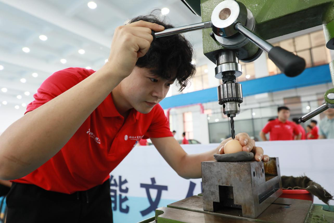 据了解,此次技能文化节主题为“比技能 育匠心 竞未来”,共有20个技能展示项目和14个比赛项目,其中技能展示项目涵盖手工技艺、3D打印、人机互动、机器人展示、智能制造、光电展示、短视频直播、艺术绘画、专项技能等展示项目,比赛项目涵盖机械设计制造类,电气控制类,汽车服务类、电商物流类、建筑装饰类、环境艺术类等专业类别。当天,在技能项目展示区和比赛区,上演了一场别开生面的“技艺秀”,包括机器人跳舞,机器人写诗,展现了现代智能制造的高度自动化过程,此外还有台钻钻生鸡蛋,实现壳破而蛋膜不破的技艺绝活,以及一幅幅精湛的百年党史手绘作品、无人机表演等众多精彩内容,学院学生们高超的技艺让现场观众拍手称赞。当天,共有512名选手参与技能展示项目和比赛项目,年龄最小的15岁,年龄最大的22岁,他们在赛场挥洒青春,不负韶华,展现技能报国之志。