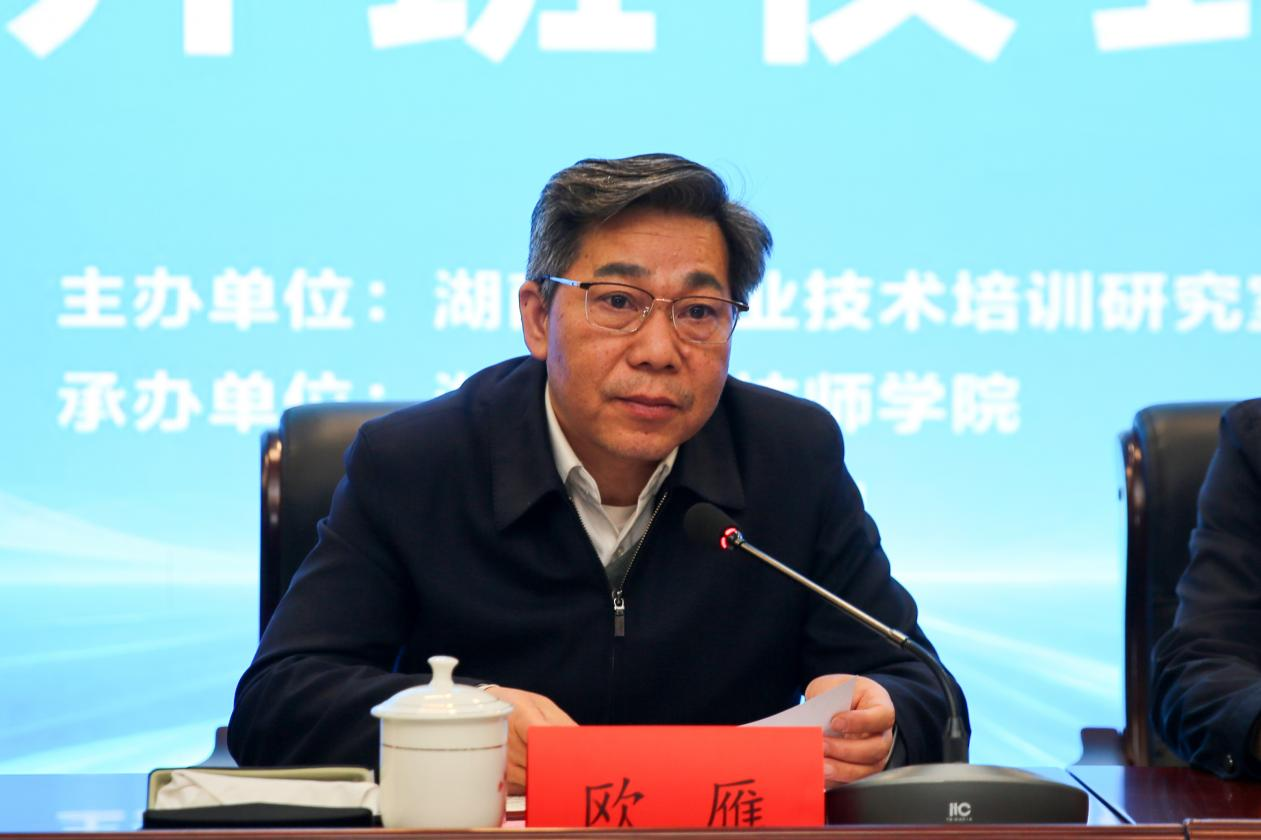 省人社厅职业技能鉴定中心副主任欧雁作开班动员讲话。他强调,工学一体化教学改革是推动技工教育转型升级、培养高素质技术技能人才的关键举措,师资队伍建设则是改革落地见效的核心支撑。他对全体学员提出期望,希望大家以此次培训为契机,沉下心来钻研业务、交流互鉴,切实提升一体化教学设计与实施能力,发挥示范引领作用,带动全省技工院校教学改革向纵深推进。