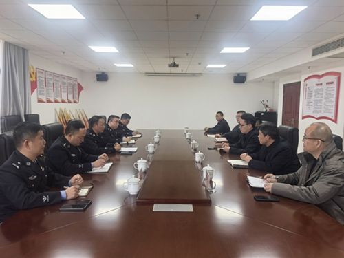 为切实加强警校联动,共同筑牢校园安全屏障,1月13日下午,九郎山公安分局局长田颖一行来院调研,并与学院就安全防范、综合治理、应急联动等工作进行座谈交流。学院党委书记韩峰、院长伏军出席座谈会,党委委员、副院长王斌及后勤保卫处、学生工作处等部门负责人参加会议。